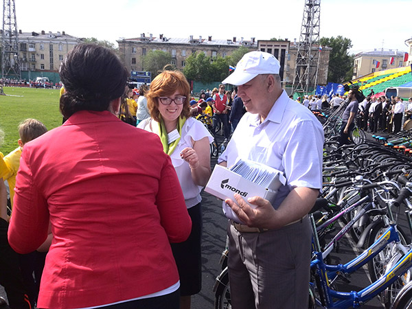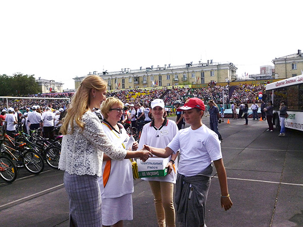 Президент благотворительного фонда «Пути преодоления», председатель комитета по развитию социальной сферы Новокузнецкого горсовета Ирина Котовщикова приняла участие в областной акции «1000 велосипедов – школьникам Кузбасса».