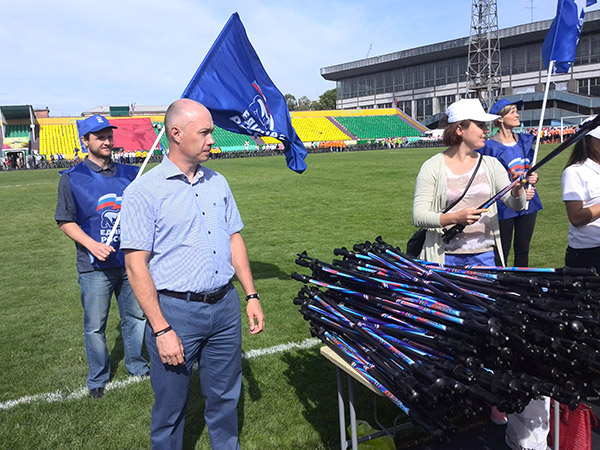 В преддверии Дня России на стадионе «Металлург» губернатор Аман Тулеев вручил бесплатный спортинвентарь в рамках акций «1000 велосипедов – школьникам Кузбасса» и «1000 скандинавских палок – ветеранам Кузбасса».