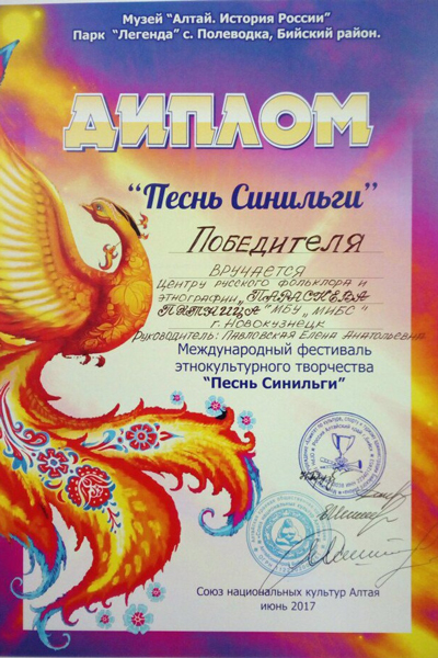 С дипломом победителя первого Международного фестиваля этнокультурного творчества «Песнь Синильги» вернулся в Новокузнецк коллектив центра русского фольклора и этнографии «Параскева Пятница».