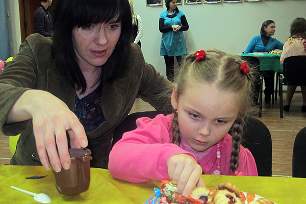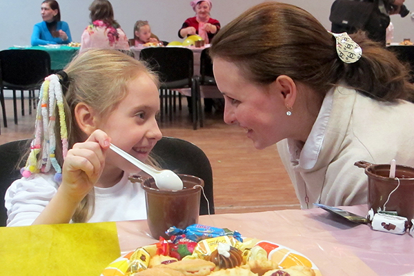 Всем ребятишкам, выступавшим на сцене, достались сладкие призы, а их мамам и бабушкам, сидящим в зале, цветы к самому весеннему празднику. Когда подарки были розданы, всех пригласили на чаепитие.
